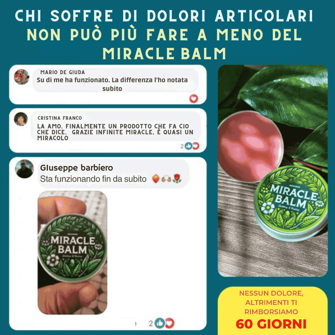 Ogni pianta viene scelta con la massima cura per donare sollievo rapido dal gonfiore e favorire una circolazione sana e naturale. A differenza di molte altre marche che diluiscono le proprie formule con riempitivi economici, La crema Miracle Balm utilizza solo estratti naturali di alta qualità, ricchi di nutrienti e facilmente assimilabili dall’organismo. Una formula autentica, efficace e delicata, pensata per chi desidera il meglio — ogni giorno.